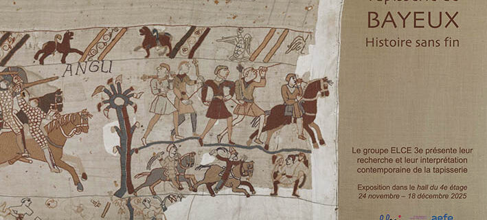Pour la Semaine des lycées français du monde, le groupe ELCE 3e a le plaisir d’annoncer l’ouverture de l’exposition Tapisserie de Bayeux. Histoire sans fin. Les élèves du parcours anglophone présentent leur recherche et leur interprétation contemporaine de la Tapisserie de Bayeux. Ils ont étudié les évènements de l’histoire commune … Lire la suite de Tapisserie de Bayeux. Histoire sans fin