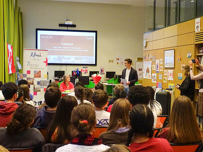 Le 5 décembre, les élèves du parcours anglophone SELO en 1re et PARLE en 5e ont eu l’honneur d’accueillir Son Excellence Madame Sarah Taylor, Ambassadrice du Canada en Russie.