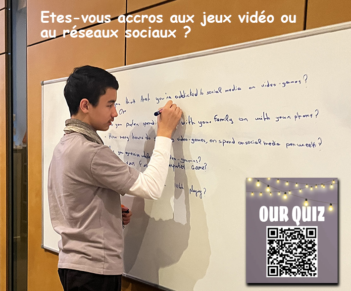 Pour le savoir, les élèves de 3eA ont invité les élèves de 6e et de 3e à répondre à leur sondage, puis ils ont joué le rôle d’expert et ont prodigué leurs conseils grâce à ce qu’ils avaient étudié les cours précédents.