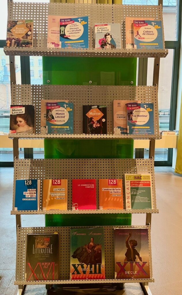 Экзамены по французскому языку (EAF) — важный этап в обучении в лицее. Чтобы поддержать учащихся, в библиотеке CDI организован специальный стенд, посвященный подготовке к EAF: настоящий уголок с полезными ресурсами, созданный для того, чтобы облегчить понимание произведений и улучшить подготовку к экзаменам.