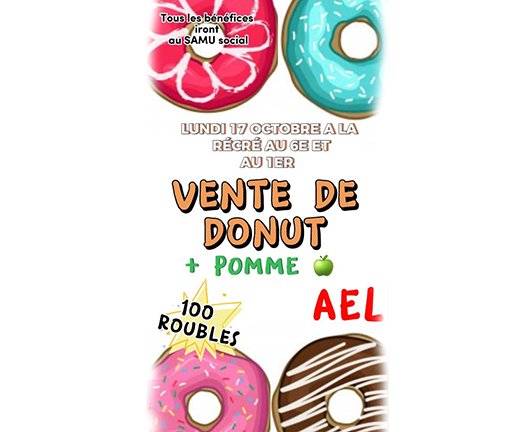 Dans le cadre de l’AEL (Association des élèves du lycée), les élèves ont organisé le 17 octobre une vente de donuts au sein du lycée. Pendant la récréation du matin, tou