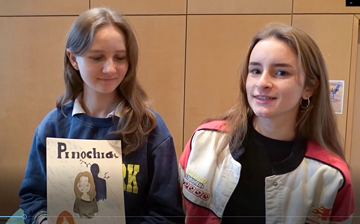 Liouna et Clara, élèves de la 1ère B, ont écrit un livre en anglais « PINOCHIA ». Voici un petit interview pris lors de la remise du livre au CDI : Liouna : « A la base,