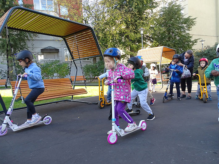 Cette semaine, avec du beau temps et de la bonne humeur, les classes de GS-CP et CP B de l’IDF ont débuté l’activité sportive « trottinette ». Les élèves ont suivi le