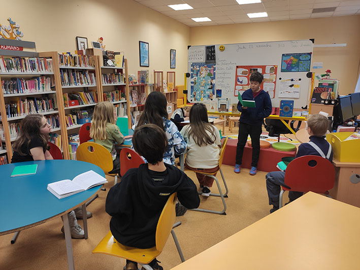 L’apprentissage de la langue se fait à travers de la musique, des images, des histoires mais aussi par le corps et la voix. Cette fois-ci, les élèves de 5e ont travaillé sur