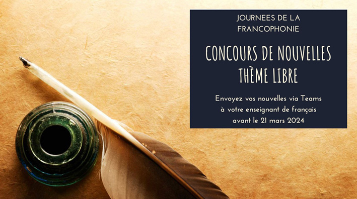 A l'occasion des journées de la francophonie, l'équipe de lettres organise un concours de nouvelles, ouvert à tous les volontaires. Le principe est simple : vous écrivez une no