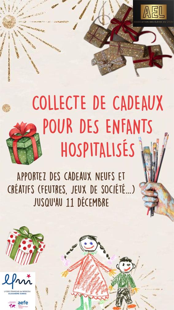 Projet de la Maison Des Lycéens. La MDL en partenariat avec la Fondation Zhiva organise une collecte de cadeaux créatifs pour les enfants hospitalisés au Centre de Cancérologie