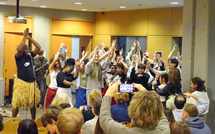 Jeudi 28 novembre le LFM a célébré la Francophonie thème de la Semaine des lycées français du monde. Pour l’occasion les élèves de 1ère avaient préparé un spectacle po