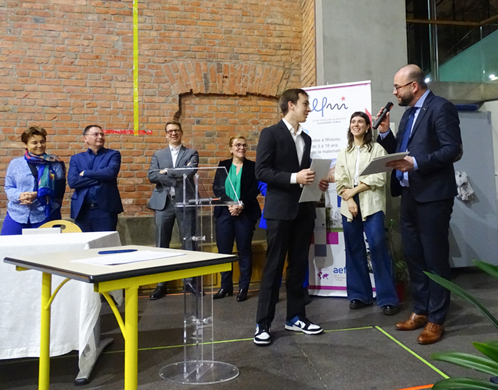 Jeudi 30 janvier en fin de journée, la salle du préau du Lycée Français de Moscou était comble et bruissait de murmures impatients. M. le Proviseur du lycée, M. l’Attaché