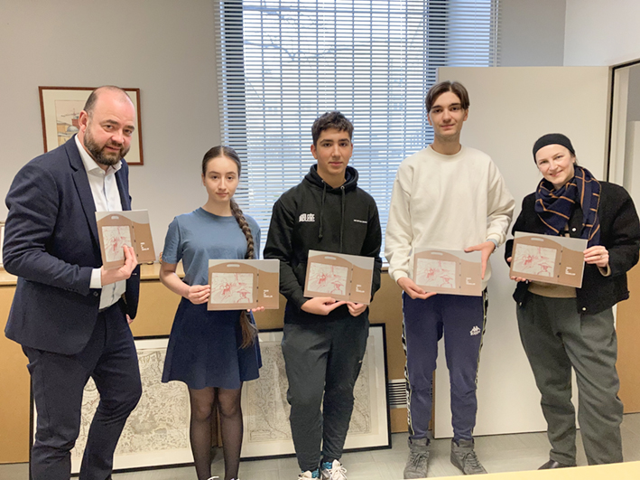 Le 20 février, le Proviseur du LFM M. Schütz a remis aux auteurs les exemplaires du livre Trees of the Traveller, consacré au projet pour le concours des théâtres en papier ja