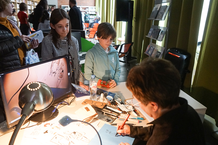Dans le cadre de la Semaine des médias et de la presse, plusieurs classes de CM1 et CM2 sont venues sur le site du collège pour participer à un atelier avec des élèves de 6e.
