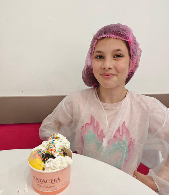 Le jeudi 22 mai, nous sommes allés dans une usine de glace avec Monsieur le proviseur, Anna et notre maitresse Annabelle. On a mis des gants, une blouse, une charlotte pour attach