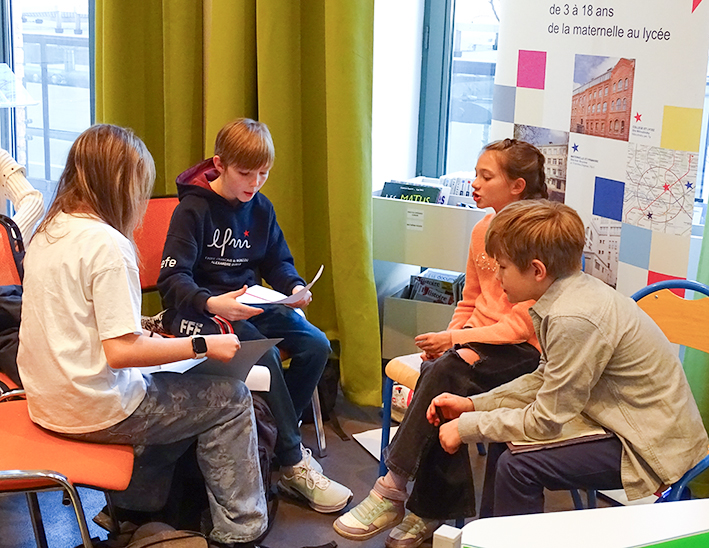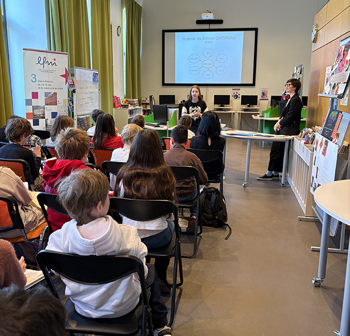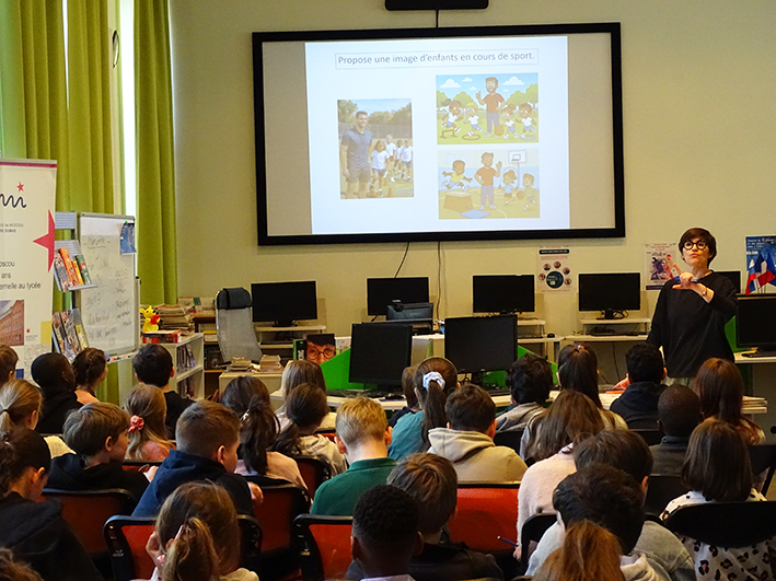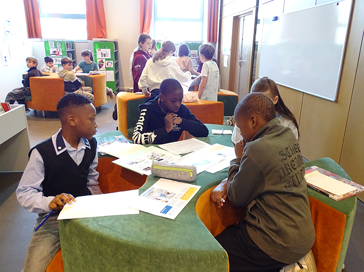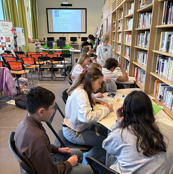 En cette semaine de la presse et des médias (23-27 mars), les élèves de CM2 sont venus au CDI participer à un atelier sur l’intelligence artificielle en compagnie des 6e. L’occasion pour eux, à travers la lecture d’articles, de comprendre comment fonctionne l’IA et comment elle peut améliorer notre quotidien mais aussi parfois le menacer.