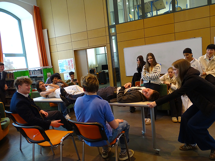 Dans un second temps, les élèves ont relevé un défi créatif : en 25 minutes, ils ont préparé puis interprété une courte scène en anglais devant leurs camarades et les membres du jury. Ce moment, mêlant expression orale, créativité et humour, a été particulièrement apprécié de tous.