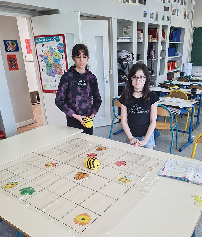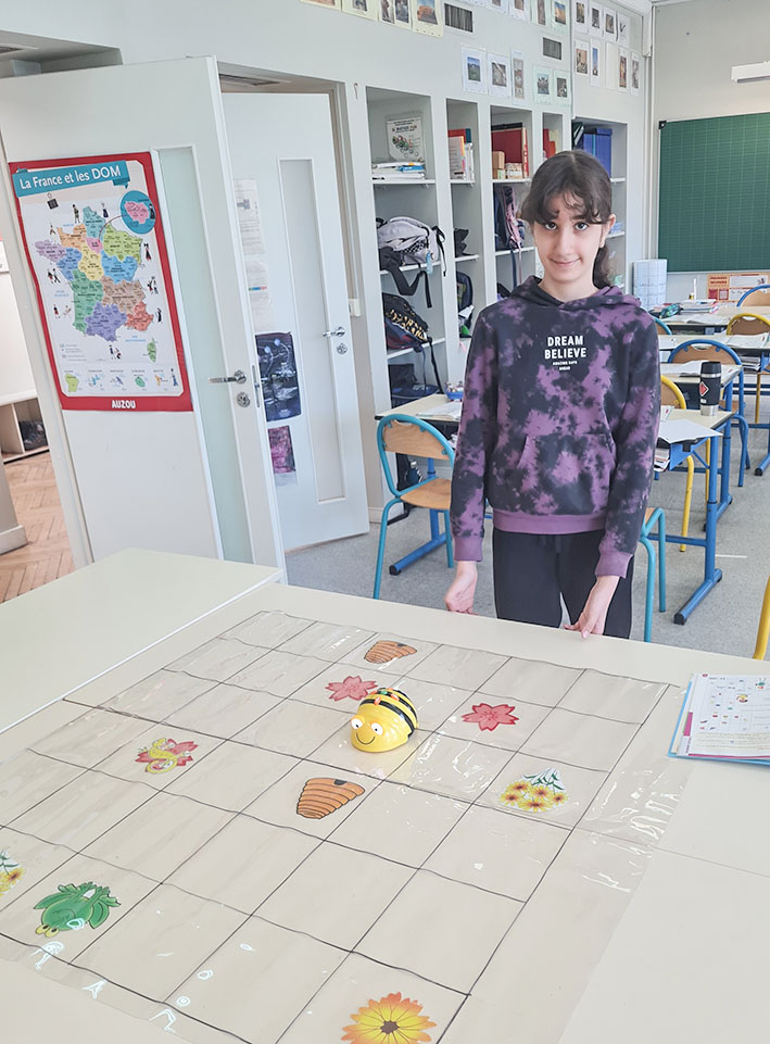 Les CM2 du CM1-CM2 de l'IDF s'entrainent à la programmation avec des mini-robots.