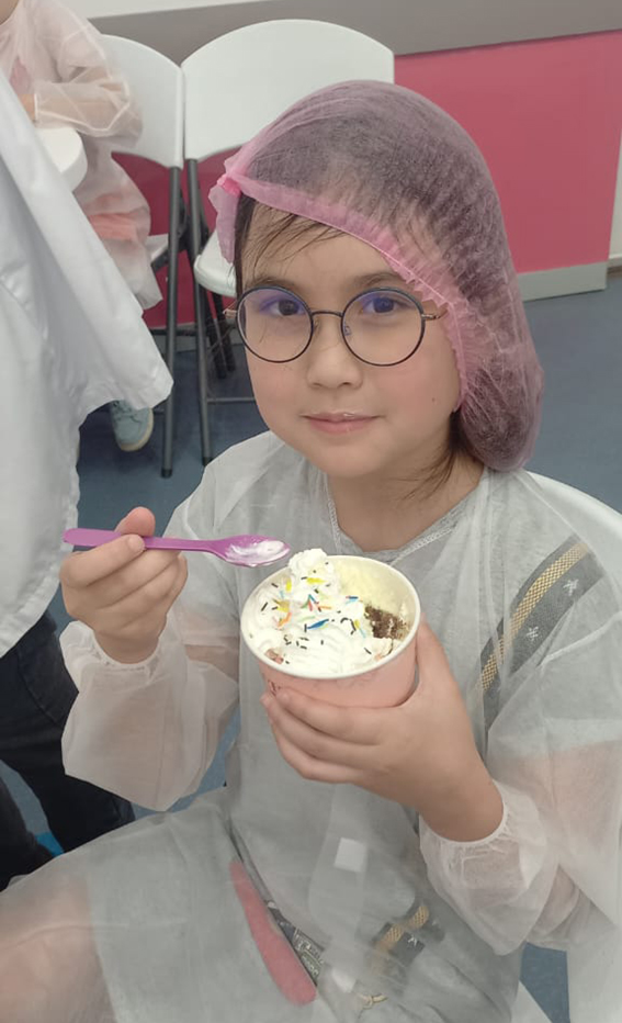Enfin, on est allé dans une salle ; là-bas on a préparé nos propres glaces et on les a mangées : les glaces sont trop bonnes !