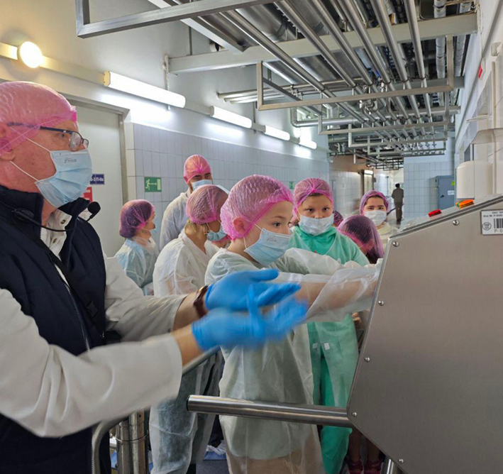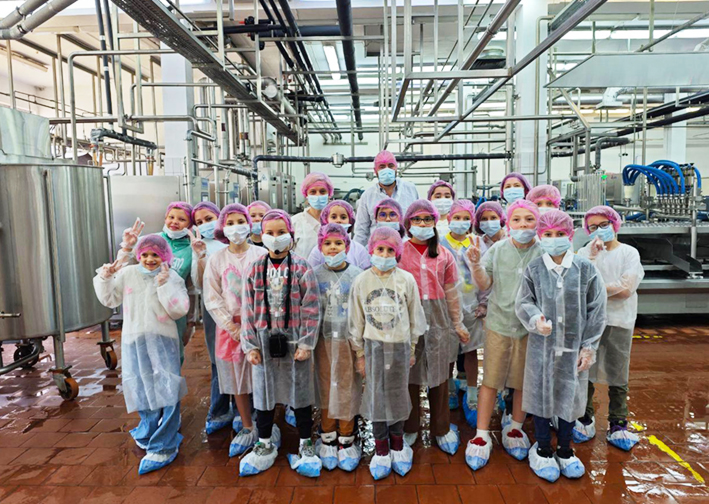 Et nous voilà partis pour la découverte : Le guide nous a racontés que pour faire une glace il faut du lait, de la crème fraiche, du sucre.