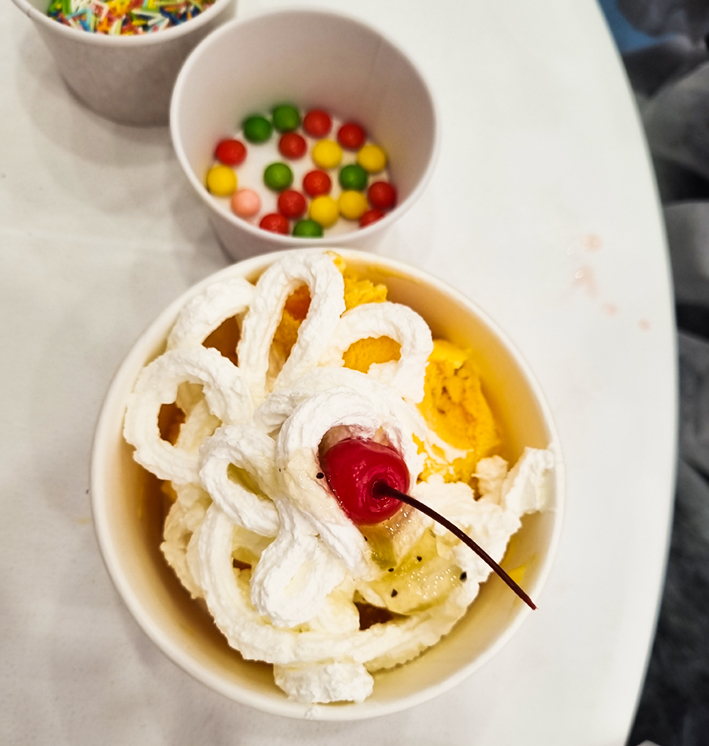 Le moment que j’ai préféré était à la toute fin ou nous avons dévoré les glaces que nous avons confectionné (Arina)