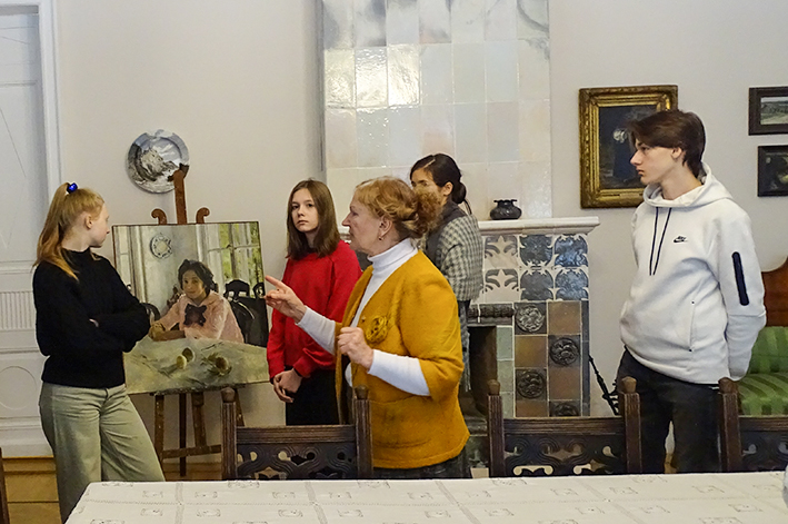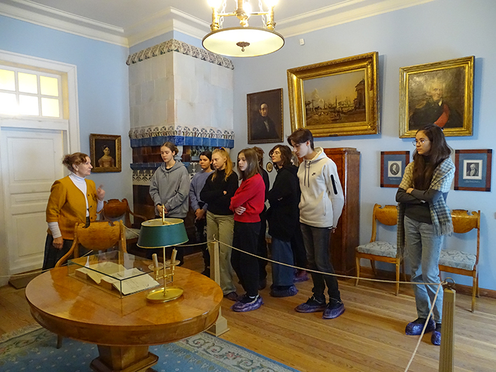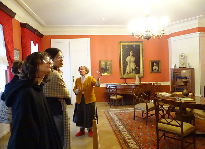 Après avoir étudié le thème de portrait en cours de russe avec Mme PRESSMAN, les élèves ont eu l’occasion de voir la salle où Valentin Serov a peint La Jeune Fille aux pêches – le portrait de la fille du propriétaire d’Abramtsevo.