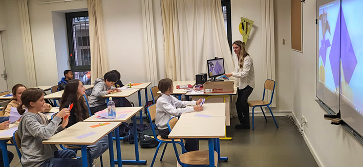 Pendant la pause méridienne les collégiens participent aux ateliers de création artistique : il s’agit de l’origami et de la peinture sur verre.