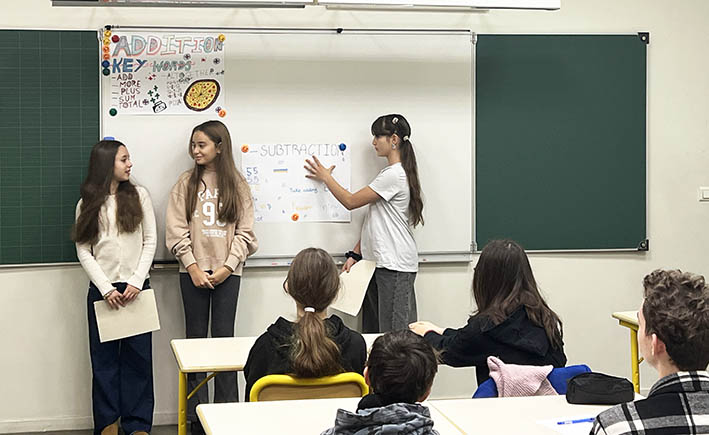 Dans le cadre du parcours PARLE (mathématiques en anglais), les élèves de 6e ont présenté aux élèves de 1ère du parcours LLCER anglais leurs posters sur les quatre opérati