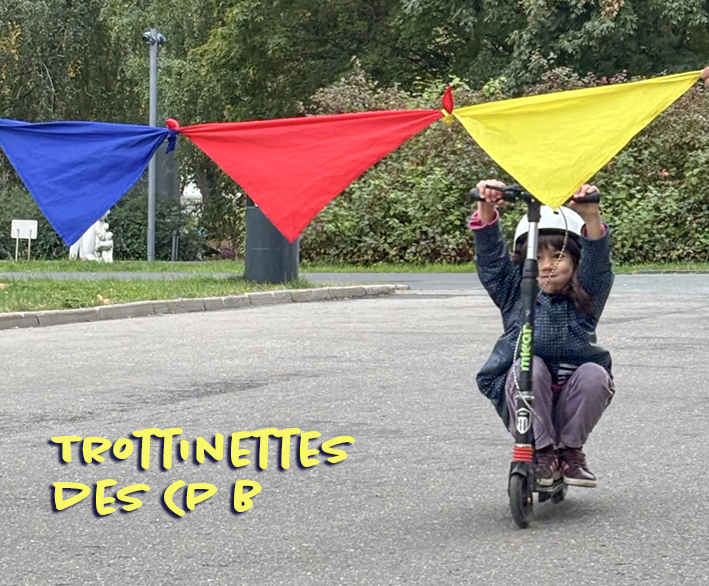 La rentrée et sa météo clémente ont permis aux élèves de CP B de l'IDF d'entamer un cycle d'EPS en trottinette. Déjà trois semaines de pratique dans la cour de l'école, pu