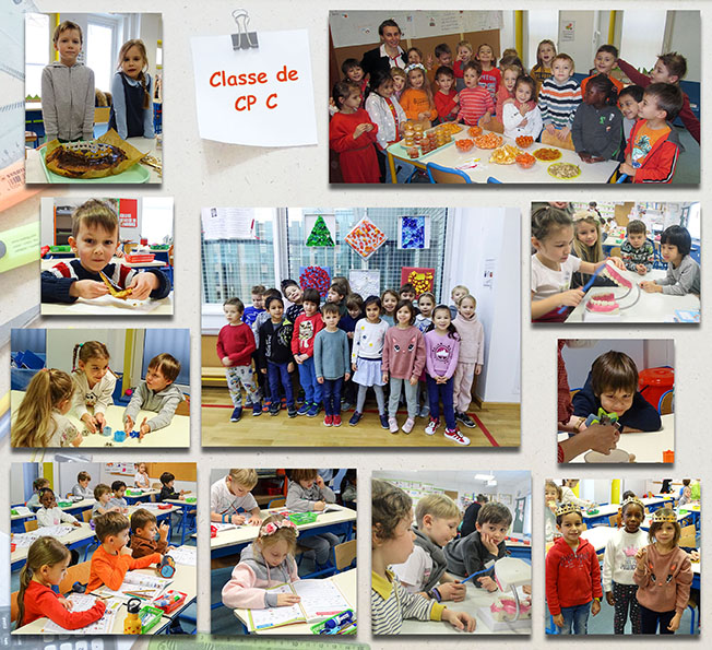 Les photos de classes primaires ont été faites cette année dans un format inhabituel : c’est une sorte de kaléidoscope de photos individuelles ou de groupes d’élèves en