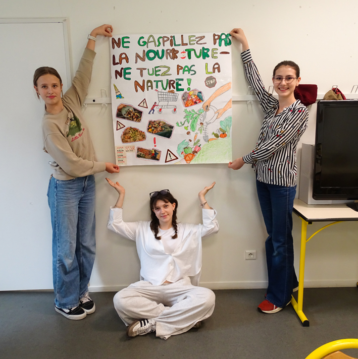 Dans le cadre du programme d’EMC (Education morale et civique), la classe de 5è S.I.R. a réalisé une affiche pour sensibiliser les élèves du lycée sur la question du gaspil