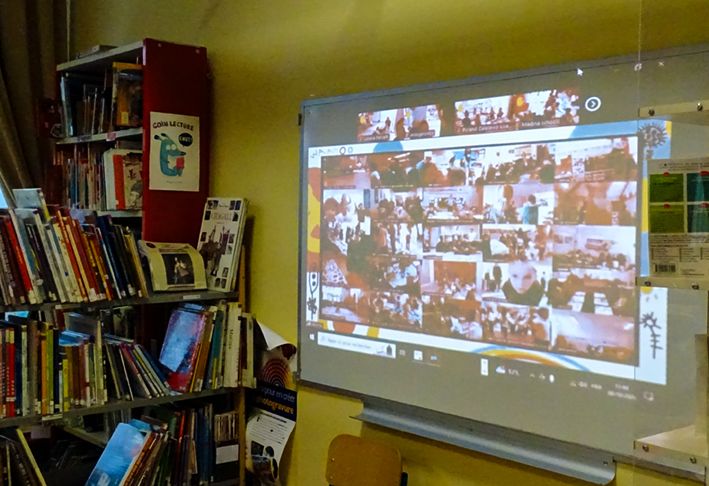 Merci aux enseignantes des classes participantes, aux professeures de FLSco, au personnel encadrant et à la professeure documentaliste pour l’accompagnement de nos jeunes artistes. Un grand merci à Hervé Tullet !