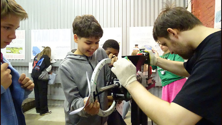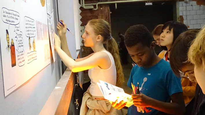 Nos élèves de 6e-5e ont été invités à une manifestation intitulée « La Nuit des idées » organisée par l’Institut français en partenariat avec les éditeurs de la bande dessinée « Le monde sans fin » au centre « Fabrika ». Ce centre occupe les locaux d’une ancienne usine de papeterie, il héberge des projets culturels et propose des espaces de travail aux artistes.