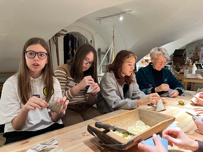 À la fin de la visite, il y a eu un atelier où les élèves ont fabriqué un jouet que l'on appelait « zakidushka » dans le village russe, et « bilboquet » dans la noblesse. Avant de retourner à l'école pour les cours, les élèves ont bu du thé d'un vieux samovar.