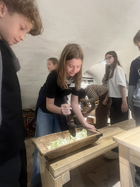 Au musée, la guide a expliqué de manière intéressante et accessible comment vivaient les gens, adultes et enfants, dans un village russe du XIXe siècle. Les élèves ont apprécié de pouvoir toucher de nombreux objets exposés, d'utiliser divers ustensiles et d'essayer de comprendre à quoi ils servaient et comment les utiliser.
