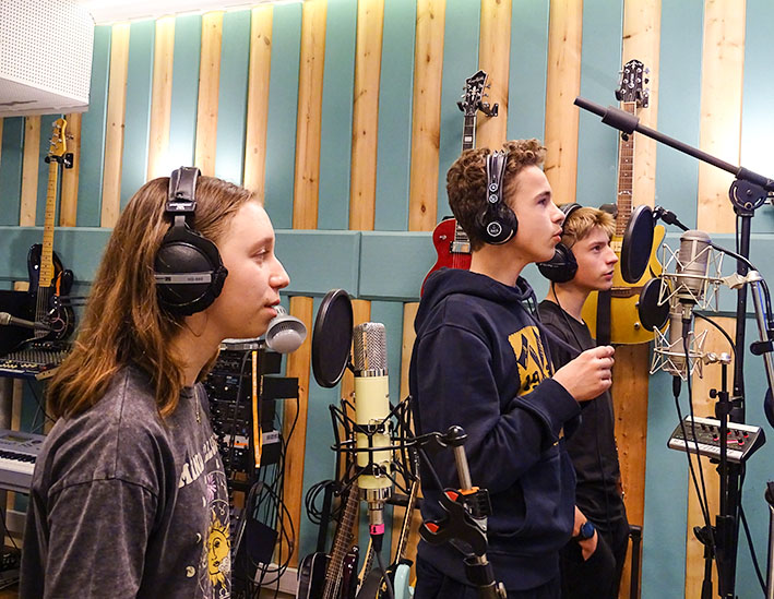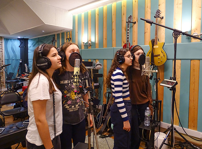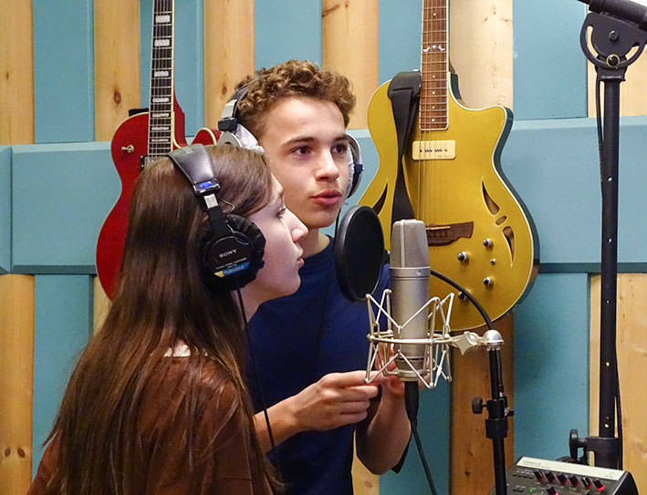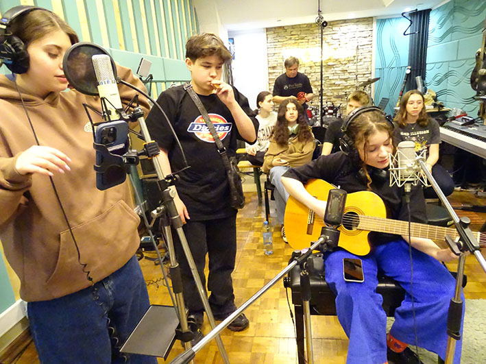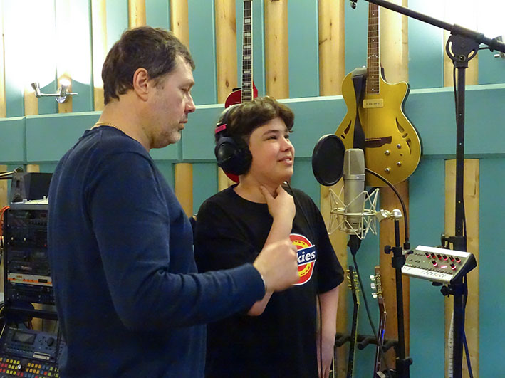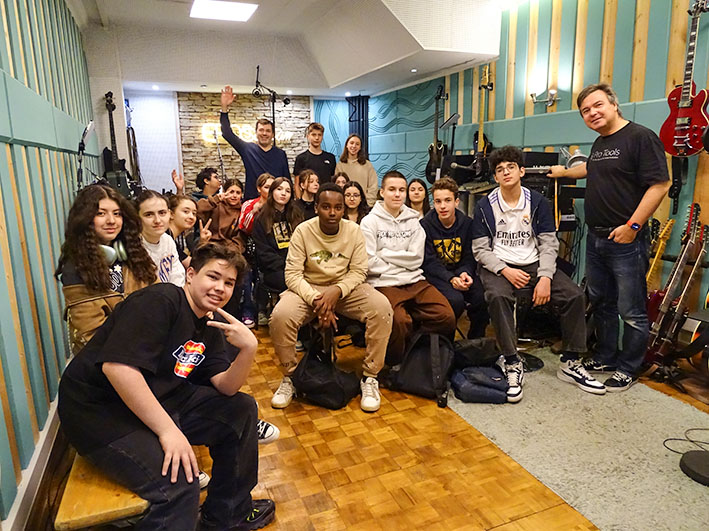 Traditionnellement à la fin du cursus de musique au collège nos 3èmes vont dans un studio professionnel pour enregistrer quelques chansons qui vont être gravées sur un disque. Encadrés par notre professeur de musique M. VALTCHENKO les élèves ont préparé une liste des œuvres, ont répété en avance et sont arrivés dans le studio ayant déjà l’idée de la production finale souhaitée.