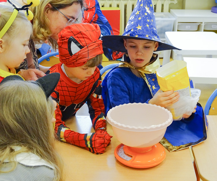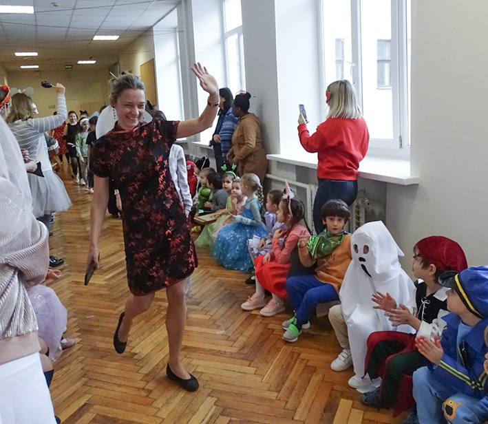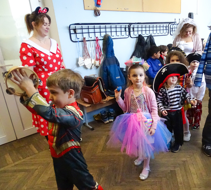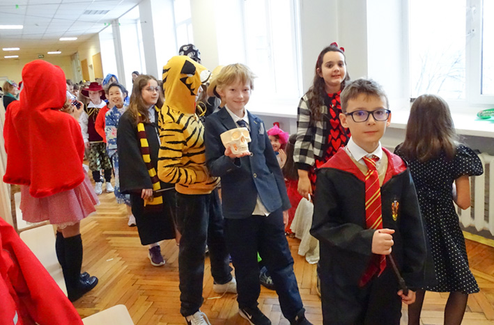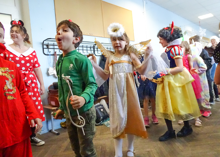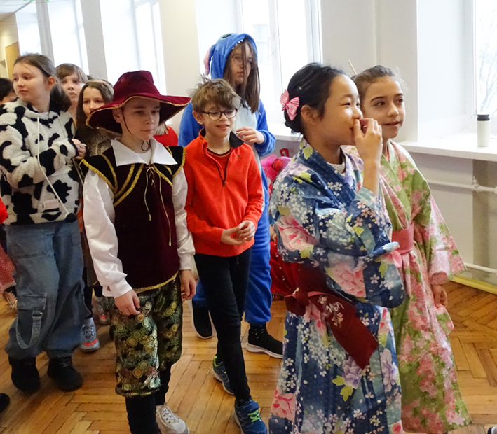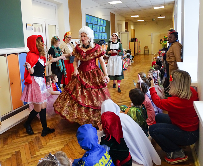 Le défilé des classes s’est déroulé dans les couloirs de l’école : des princesses et des personnages des contes, des magiciens et des animaux mystiques, des héros et des hôtesses des pays lointains… Quelle beauté ! Que de sourires !
