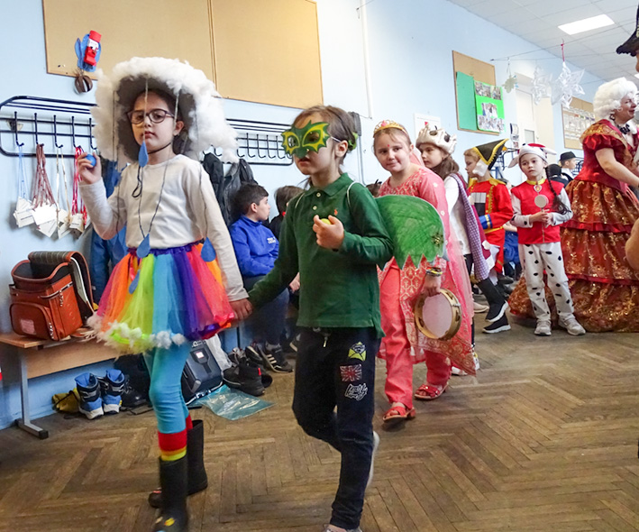 L’ambiance de la fête régnait à l’école Bounine la veille des vacances d’hiver – c’est le Carnaval ! Tous attendaient ce moment avec impatience.