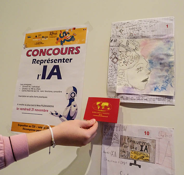 A l’occasion de la Semaine des lycées français du monde, un concours « Représenter l’IA » a été organisé par notre professeure d’arts plastiques Mme Olga PLEKHANOVA