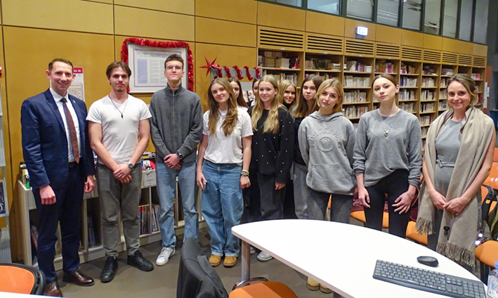 Des élèves de Terminale s'entretiennent avec l'attaché juridique des États-Unis sur la justice américaine dans le cadre de l’étude du film « Twelve Angry Men » de Sydney