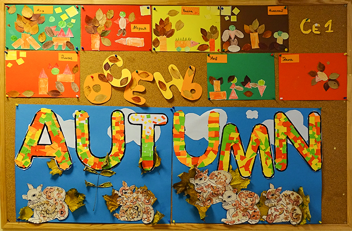 L’automne bat son plein et les élèves de l’école Bounine s’en réjouissent : avec leurs professeurs, ils font des décorations en couleurs de feuilles mortes et les installent dans les couloirs.