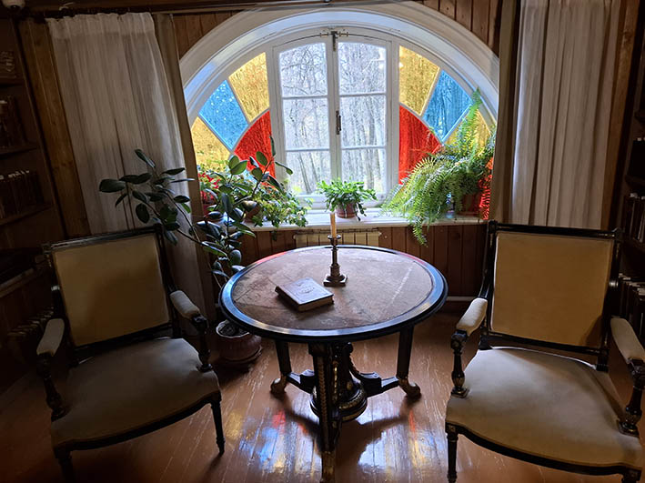 Ensuite, nous avons visité le village de Tarakanovo où se trouve l’église dans laquelle Alexandre Blok et Lioubov Mendeleïeva se sont mariés. L’ancienne école du village abrite une exposition consacrée à la biographie d’Alexander Blok. Le guide nous a raconté sa passion de jeunesse pour le théâtre, la naissance de son amour pour Lioubov Mendeleïeva, ses premières expériences poétiques.