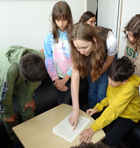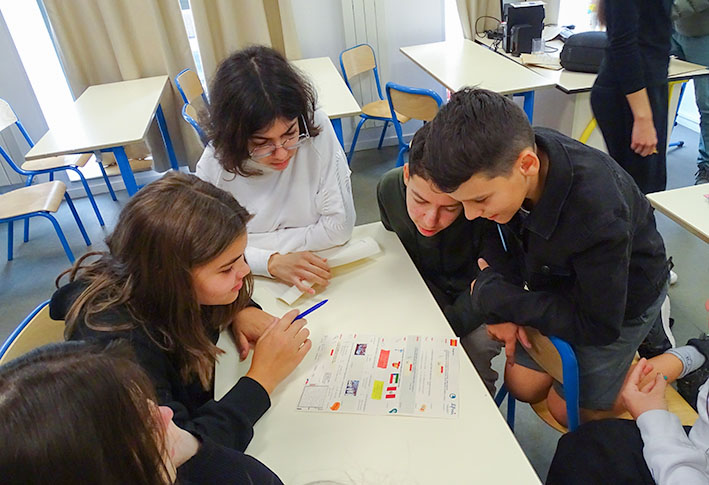 Les 15 équipes formées du mélange des élèves de toutes les classes ont passé une journée bien remplie d’activités différentes : littéraires, linguistiques, scientifiques, musicales, sportives. Chaque équipe avait deux capitaines pour organiser le travail.