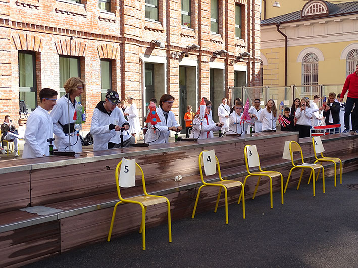 avant d’être lancées dans la cour du lycée en fin d’après-midi, point culminant de la fête.