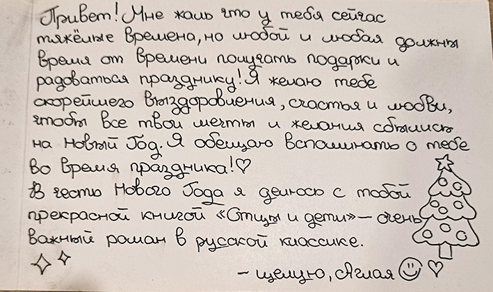 Chaque élève a envoyé un livre et signé une carte de vœux.