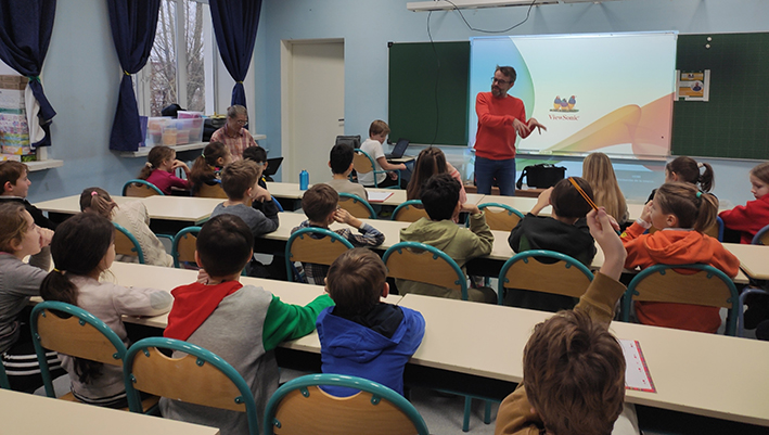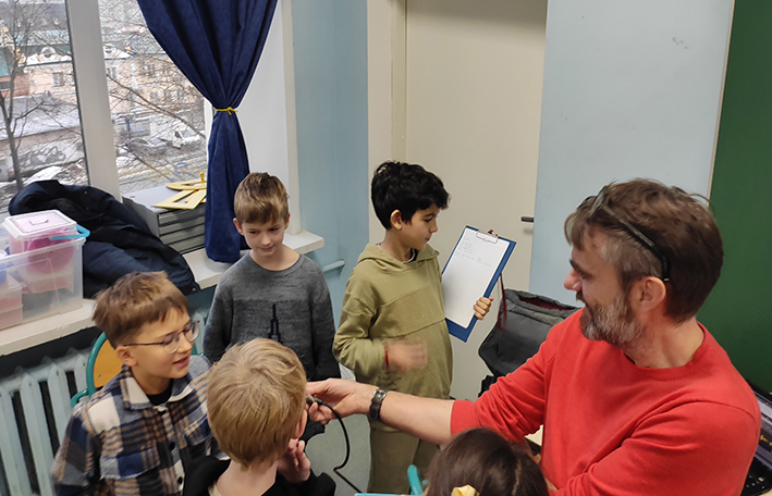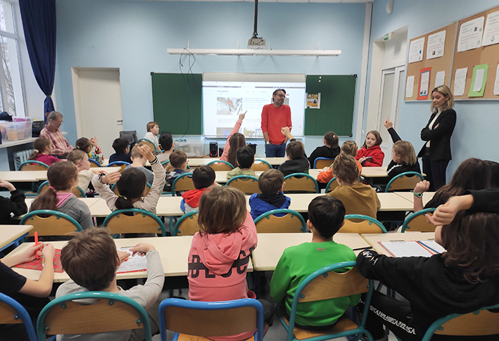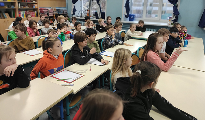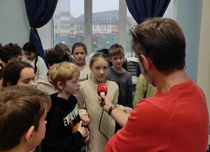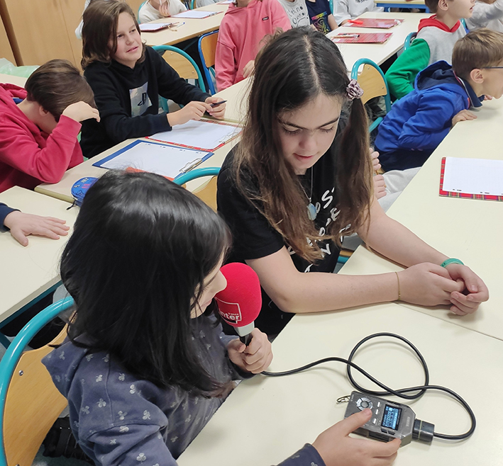 Le mardi 13 décembre, les CM1 et les CM2 de l'école Bounine ont participé à la conférence de M. Sylvain TRONCHET, correspondant de Radio France à Moscou, sur le thème de la découverte du média radio et de ses professionnels. Une fois l'échange terminé, les élèves les plus inspirés par la découverte du métier de journaliste se sont fait interviewer, ci-joint un petit montage enregistré par l'intervenant.