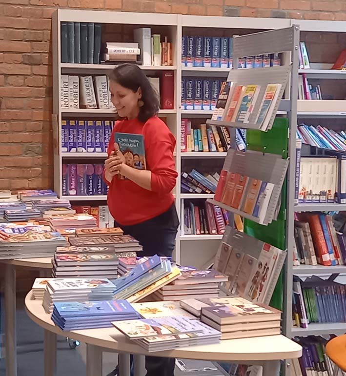 A la fin de l’entretien, les élèves ont pu poser des questions diverses sur « combien gagne un traducteur », « comment s’organise son travail » etc… et ils ont pu également acheter des livres au stand installé par la maison d’édition Kompas Guide et les faire dédicacer.