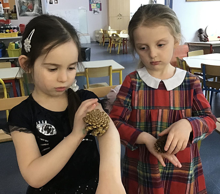en MS, ils ont réalisé que la sensation du toucher passe par le contact avec la peau en touchant des objets de la nature et différentes matières puis en jouant à différents jeux pour éprouver les uns avec les autres le sens du toucher.