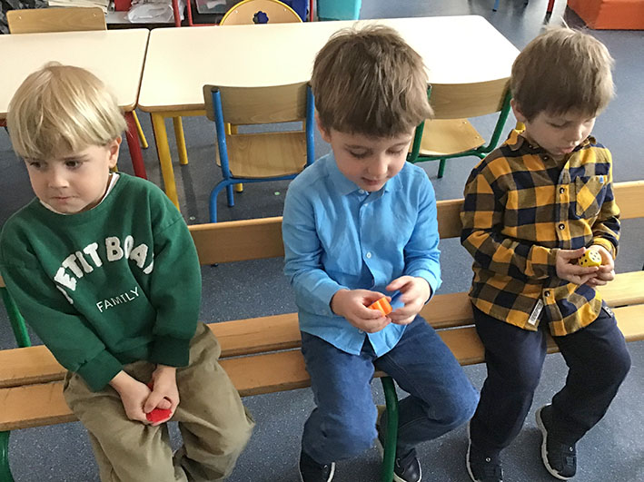 en PS, ils ont touché avec la main ou le doigt des livres à toucher et des matières pour définir si c’est mou ou dur ;