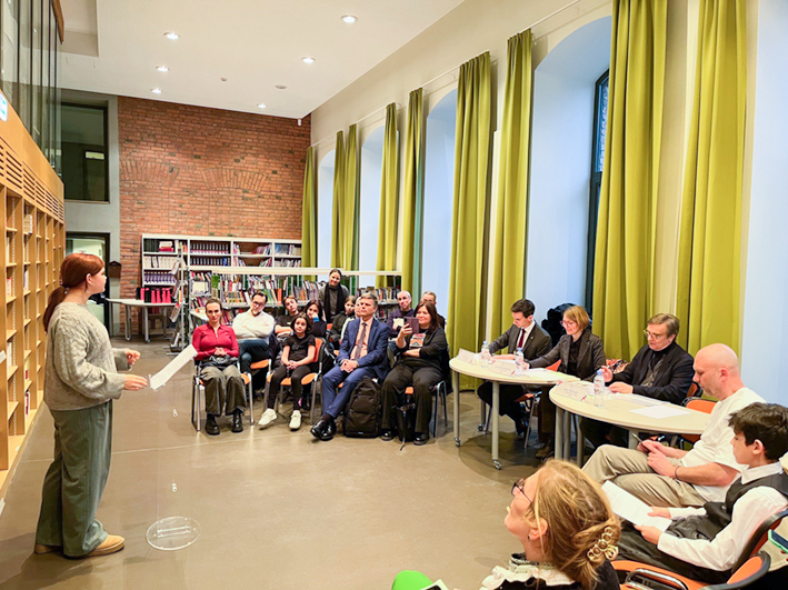 Jury composé du consul de Belgique, Denis NAETS, de Lara OVSYANNIKOVA, documentaliste à l’EIB, et d’Alain BARLUET, correspondant du Figaro. Toutes les deux iront représenter le LFM lors de la finale de la zone à Munich au mois d’avril.