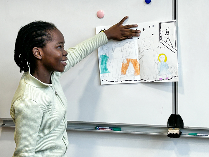 Les élèves ont participé à une petite mise en scène. Ils ont visionné le portrait d'un supposé voleur qui était entré dans la salle de classe, mais seul un élève avait eu l'occasion de le voir. Cet élève a donc dû le décrire aux autres, stimulant ainsi leur capacité à utiliser le vocabulaire de la description de manière créative et interactive.