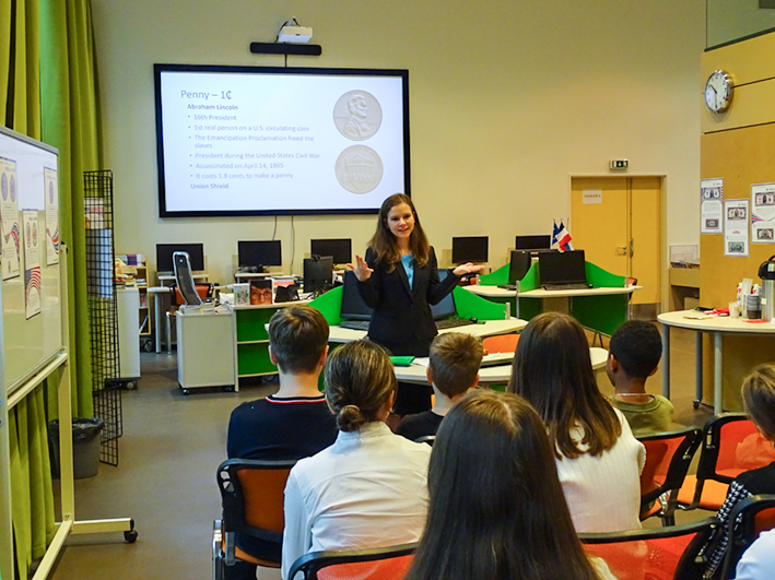 Après le succès de la première exposition sur le système électoral américain par les élèves de 2nde du parcours SELO, le Lycée Français de Moscou poursuit sa série d’expositions avec une nouvelle étape : cette semaine, ce sont les élèves du parcours PARLE (6e, 4e et 3e) qui découvrent l’histoire et le symbolisme des monnaies américaines.