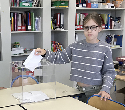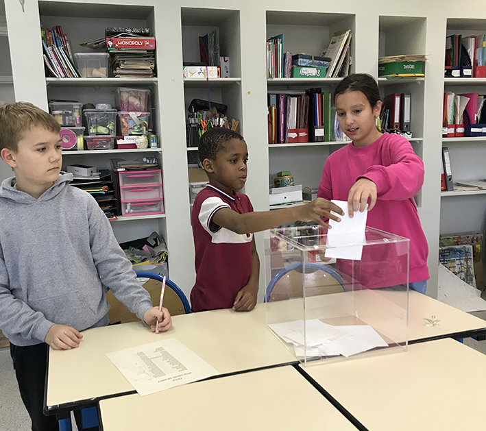 Puis nous avons procédé au vote. Yvette était présidente du bureau de vote, Papa Bram et Andrei étaient les assesseurs. Raphael et Emma ont ensuite procédé au dépouillement.