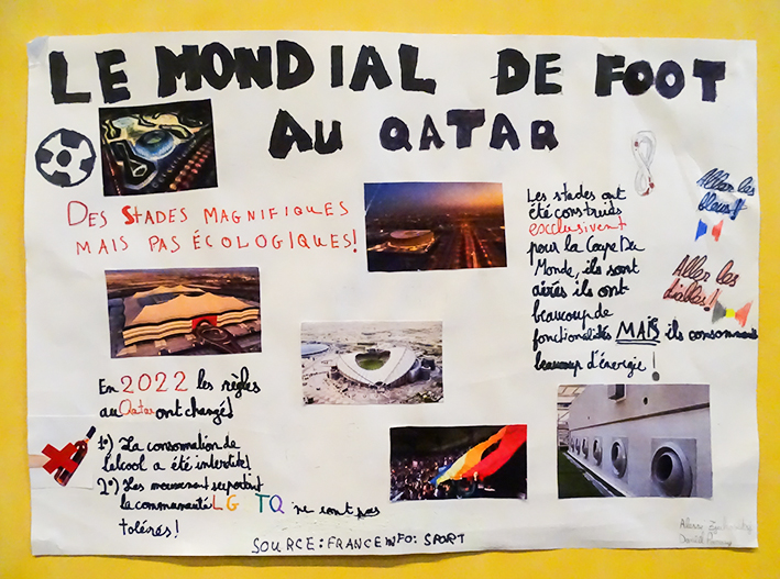 En ce moment nous pouvons donc profiter d’un patchwork d’informations autour de la Coupe du Monde de football au Qatar (les résultats présentés par Sacha), de l’inauguration du parc Ghibli au Japon (présenté par Lara), de la vie du plus vieux chat du monde mais aussi d’une astronaute française et du cap franchi des 8 milliards d’êtres humains.